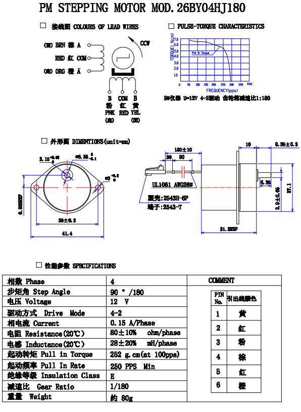25BY48HJ21,25BY48HJ49,26BY04HJ180,精密減速步進(jìn)電機(jī)