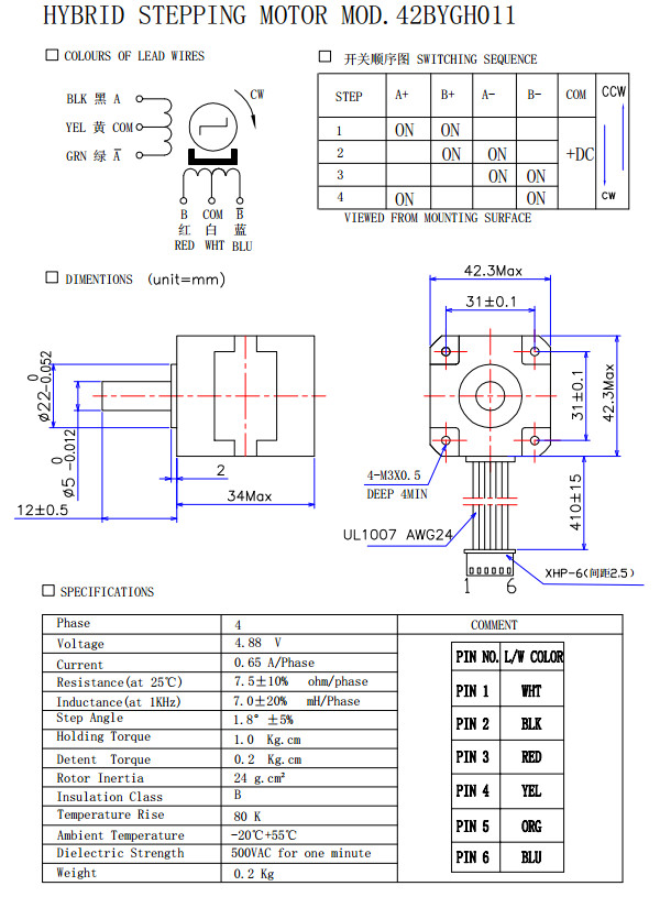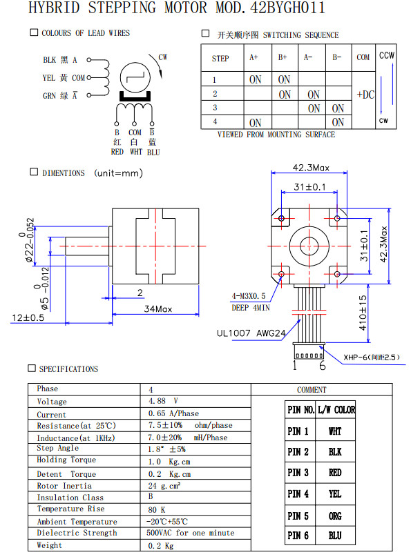42BYGH010,42BYGH011,42BYGH023,42BYGH102Q,42BYGM402,混合式步進(jìn)電機(jī)