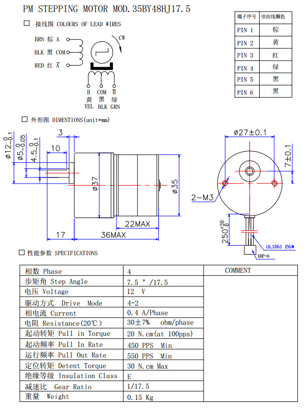35BY48HJ4.5,35BY48HJ6.3,35BY48HJ11B,35BY48HJ17.5,精密減速步進電機