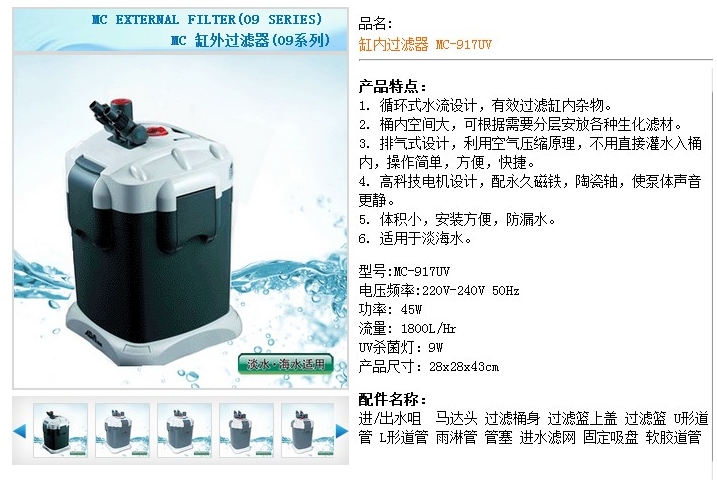 詳細(xì)信息 MC-917UV,缸內(nèi)過濾器