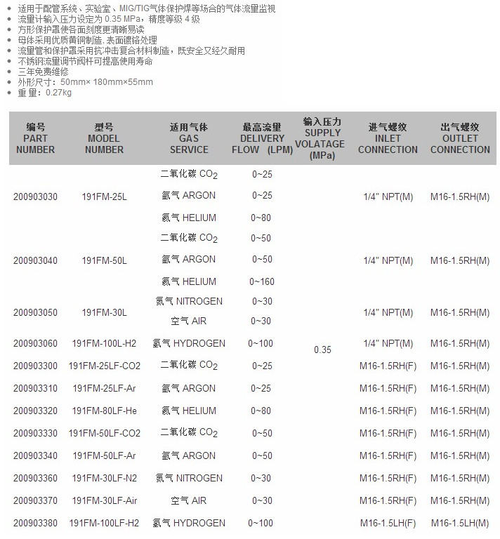 詳細(xì)信息 191FM-25L,191FM-50L,191FM-30L,191FM-100L-H2,191FM-25LF-CO2,氣體流量計(jì)