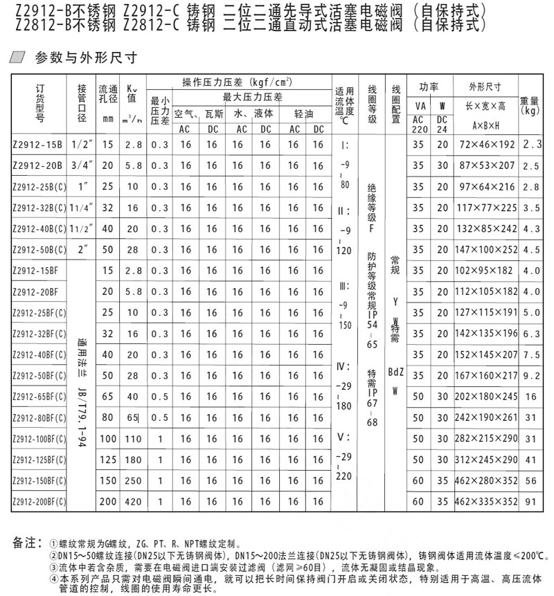 Z2912-15,Z2912-20B,Z2912-32BC,Z2912-40BF,Z2912-50BFC,先導(dǎo)活塞式電磁閥