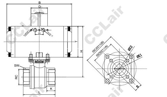 | DN | RC | L | K | SW | H | T | D | B | 黃銅球閥訂貨號 |
