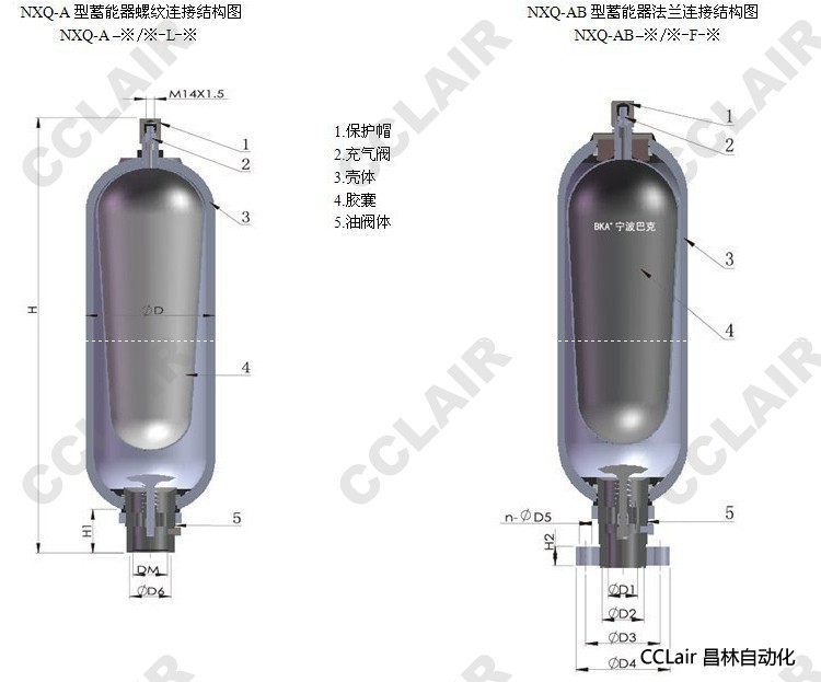 2.若對(duì)囊式蓄能器有特殊要求時(shí),請(qǐng)同本企業(yè)商洽。