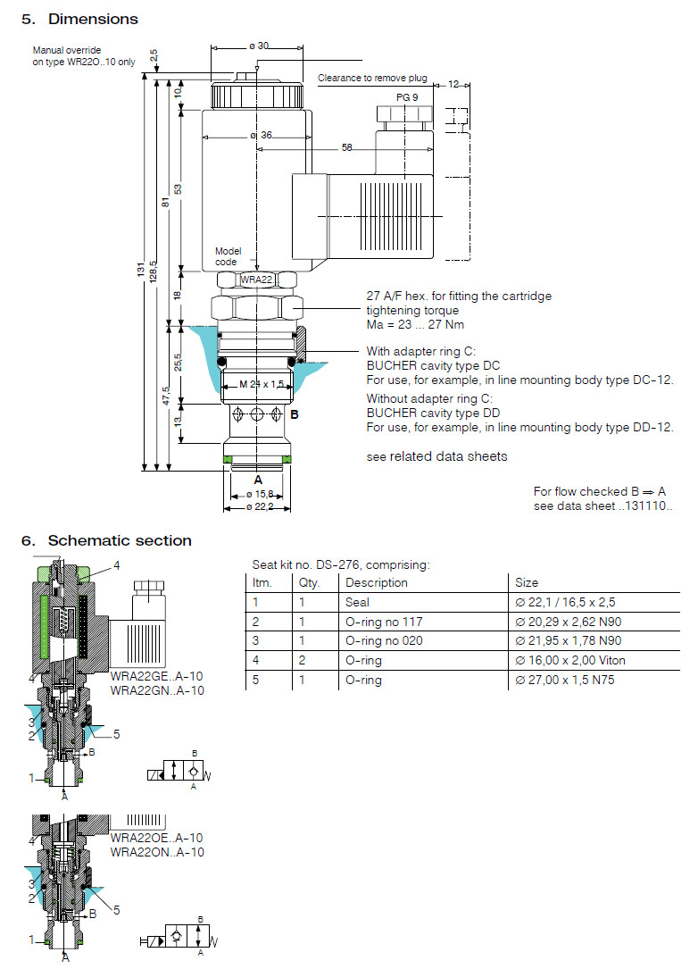 詳細(xì)信息 WRA22GEDA-10-1,WRA22OEDA-10-1,WRA22GNCA-10-1,WRA22ONCA-10-1,Bucher方向閥