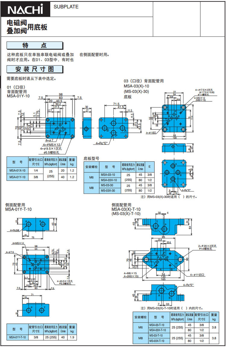 詳細(xì)信息 MSA-01,MSA-03,MS-03,MDS-04,MDS-06,MSA-01X-10,MSA-01Y-T-10,NACHI閥用底板