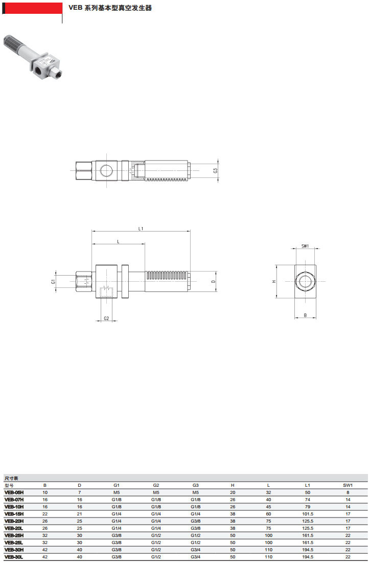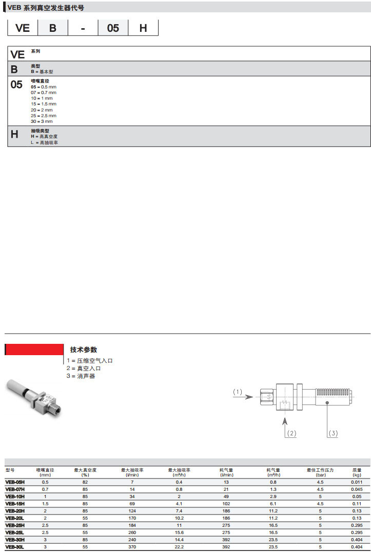 VEB-05H,VEB-07H,VEB-10H,VEB-15L,VEB-20L,camozzi基本型真空發(fā)生器