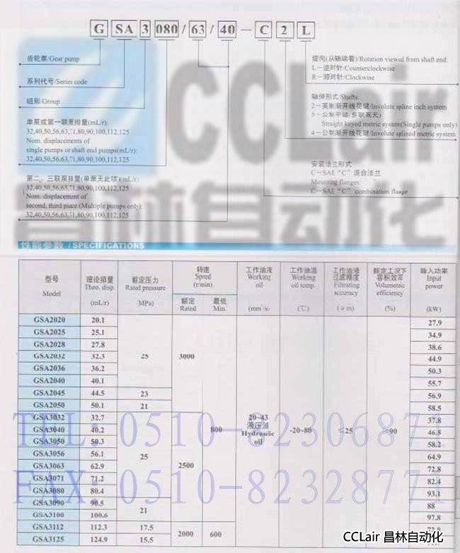 詳細(xì)信息 GSA3040, GSA3050, GSA3056, GSA3063, GSA3071,高壓齒輪泵