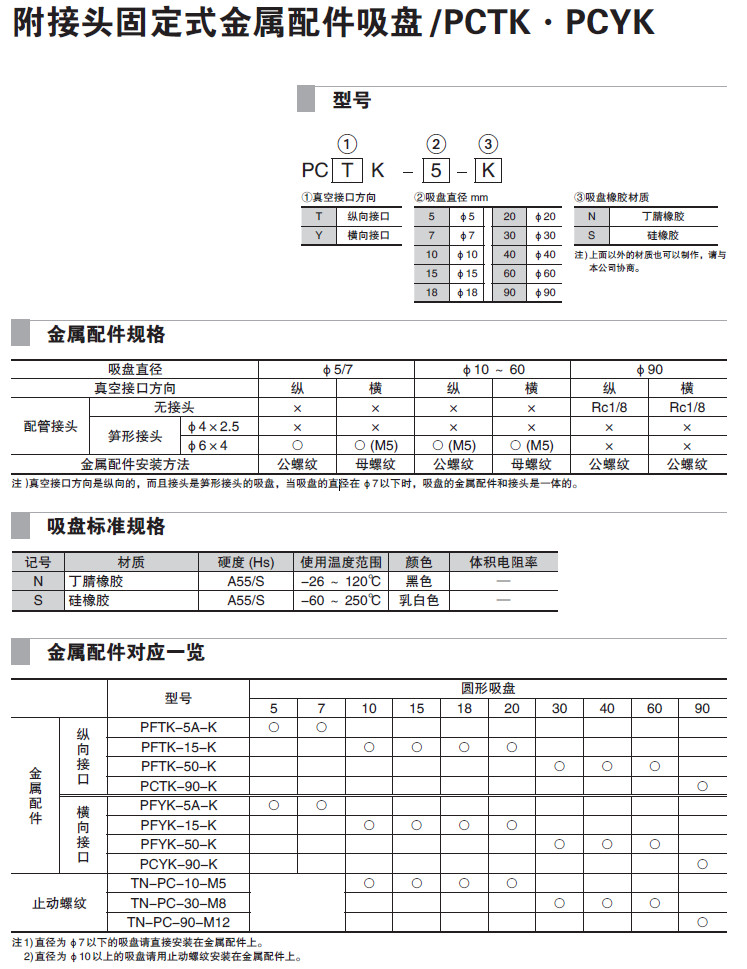 詳細(xì)信息 PCTK-5,PCTK-7,PCTK-10,PCTK-15,PCTK-18,PCYK-20,PCYK-30,PCYK-40,吸盤 PCYK-15,PCYK-18,PCYK-60,PCYK-90,