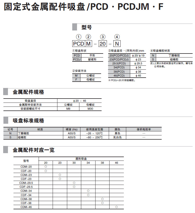 PCDM-20,PCDJM-20,PCDM-23,PCDJM-23,PCDF-29.5,PCDF-34,PCDF-38,吸盤