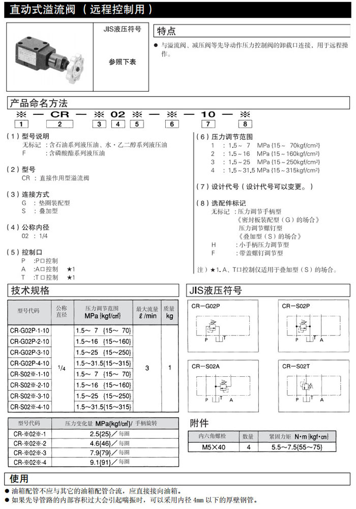 CR-G02P,CR-S02P,CR-S02A,CR-S02T,CR-G02P-1-10,CR-S02P-1-10,DAIKIN直動式溢流閥