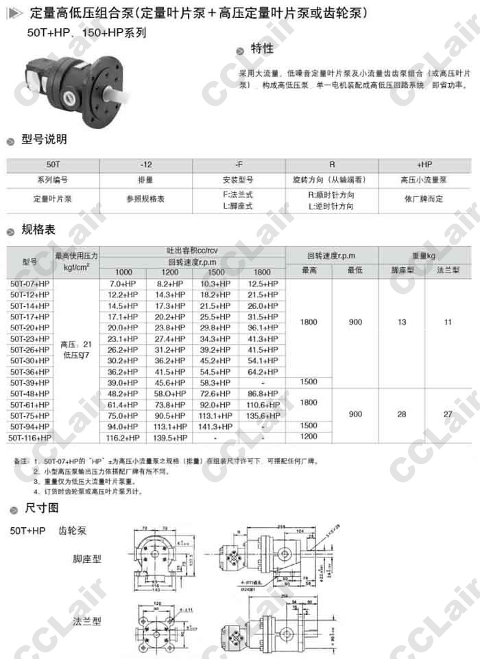 50T,150T,150T-94+HP,150T-116+HP,50T-23+HP,50T-26+HP,50T-20+HP,定量高壓組合泵