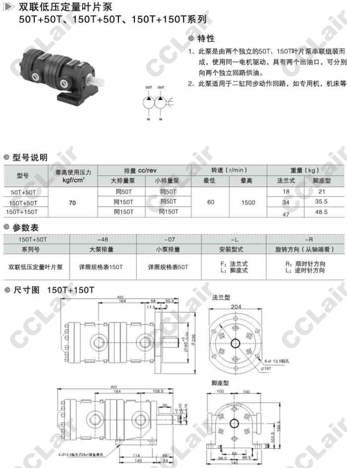 50T+50T,150T+50T,150T+150T,雙聯(lián)低壓定量葉片泵,無(wú)錫昌林