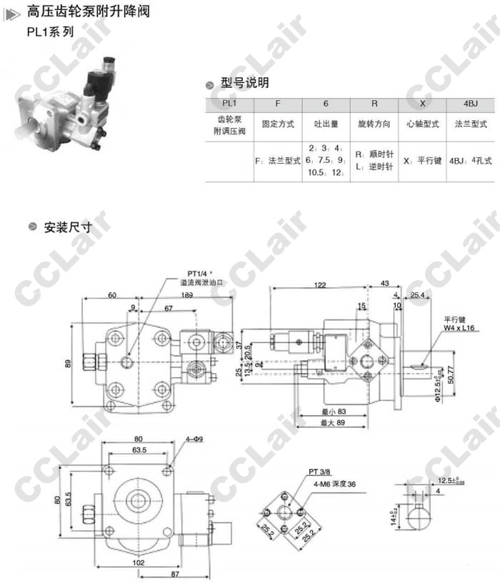 詳細信息 PL1-F-2RX-4BJ,PL1-F-3RX-4BJ,PL1-F-4RX-4BJ,PL1-F-6RX-4BJ,高壓齒輪泵附升降閥