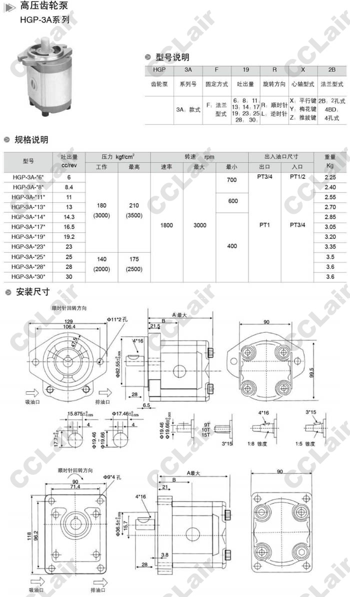 HGP-3A-F-6RX-2B,HGP-3A-F-8RX-2B,HGP-3A-F-11RX-2B,HGP-3A-F-13RX-2B,高壓齒輪泵