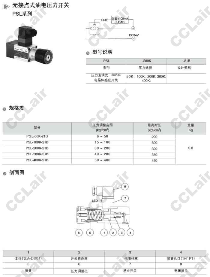 詳細(xì)信息 PSL-50K-21B,PSL-100K-21B,PSL-200K-21B,PSL-280K-21B,PSL-400K-21B,油電壓力開關(guān),無錫昌林