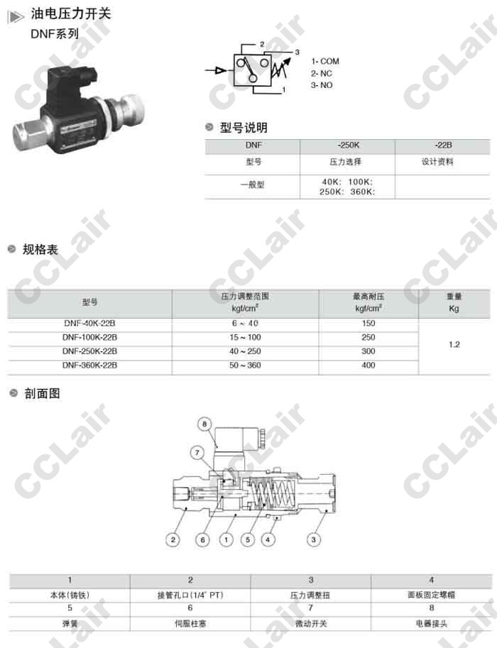 詳細(xì)信息 DNB-40K-22B,DNB-70K-22B,DNB-250K-22B,DNB-360K-22B,油電壓力開關(guān),無錫昌林
