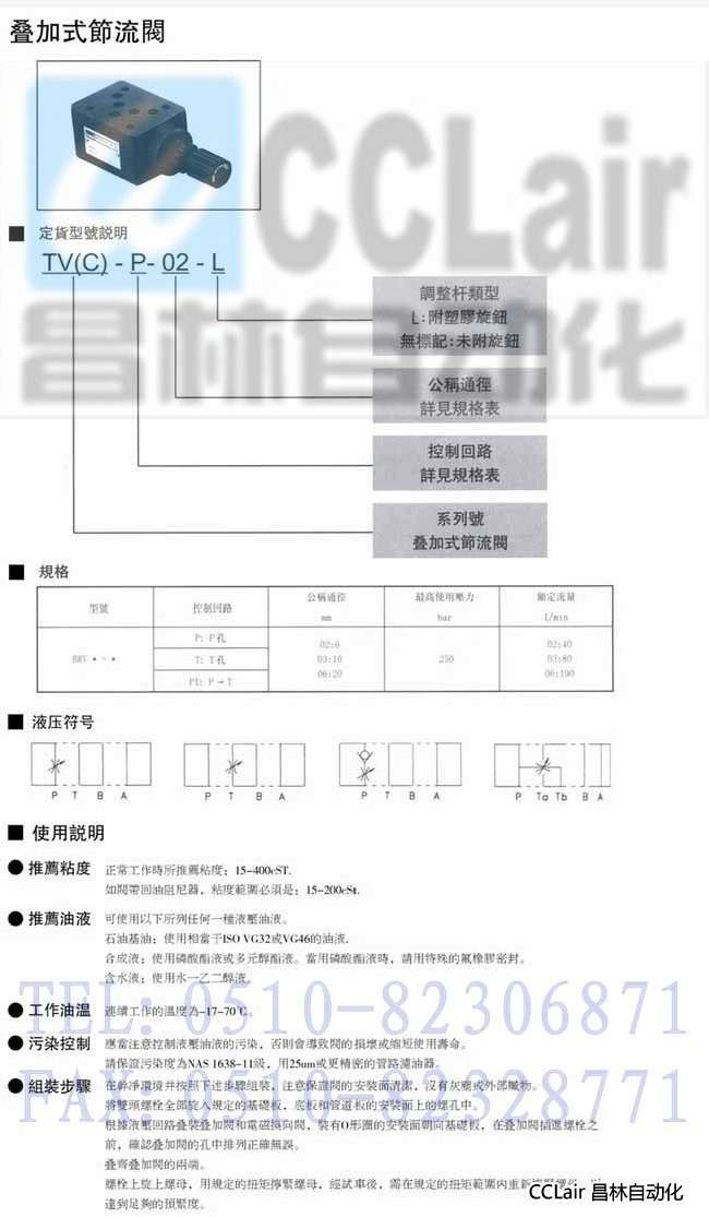 TVP-02,TVP-03,TVP-06,TVT-02,TVT-03,疊加式節(jié)流閥