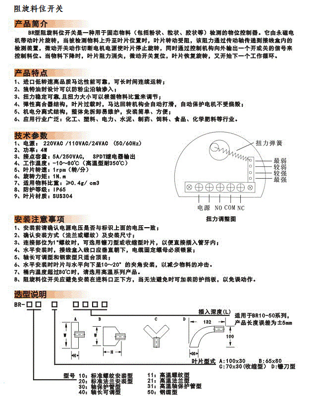 XFL-ZX-110MM,一字型阻旋料位開關(guān)