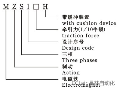 三相交流長行程制動電磁鐵,其外殼除MZS1-80H外都用鋼板焊接而成。且MZS1-25H、45H及80H三種又具有緩沖裝置。