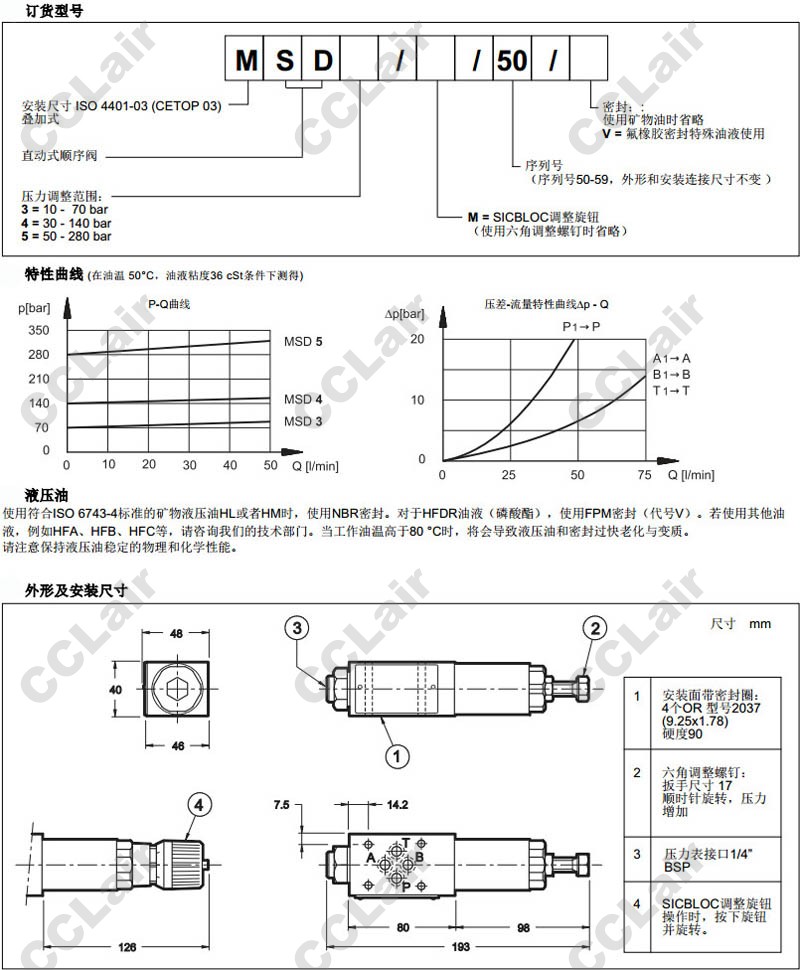 DUPLOMATIC(迪普馬),MSD3/M/50,MSD4/M/50,MSD5/M/50,MSD3/M/50/V,MSD4/M/50/V,MSD5/M/50/V,直動(dòng)式順序閥