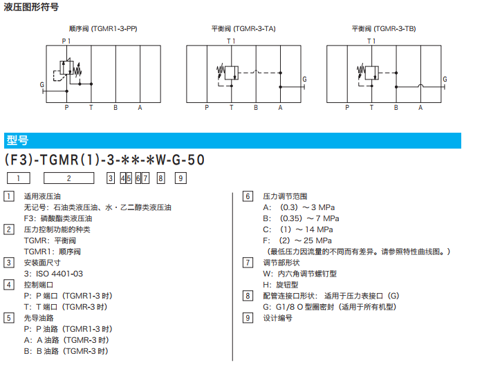 TGMR-3-PP-AW-G-50,TGMR-3-PP-AH-G-50,TGMR-3-PP-BW-G-50,TGMR-3-PP-BH-G-50,TGMR(1)-3疊加型順序閥,平衡閥