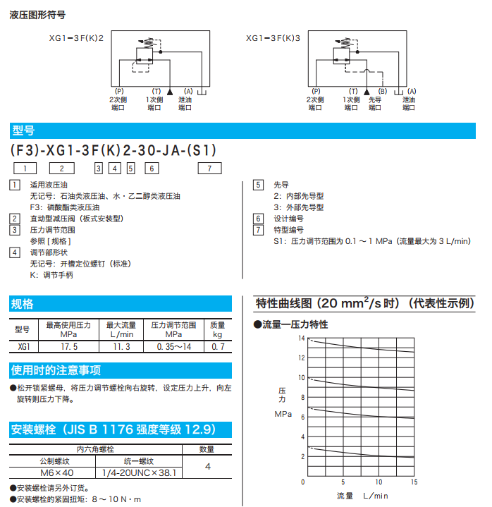 XG1-3F2-30-JA,XG1-3FK2-30-JA,XG1-3F3-30-JA,XG1-3FK3-30-JA,XG1直動(dòng)型減壓閥(板式安裝型)