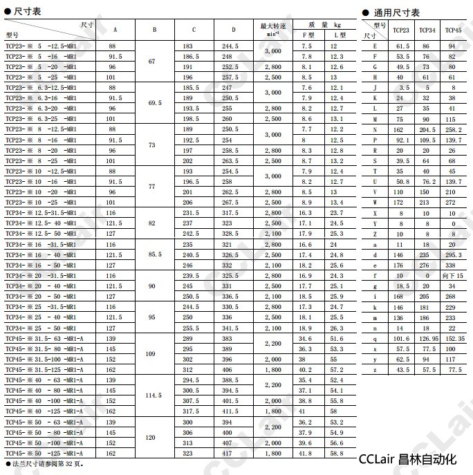 無錫昌林TCP44-L31.5-50-MR1,TCP44-L40-40-MR1,