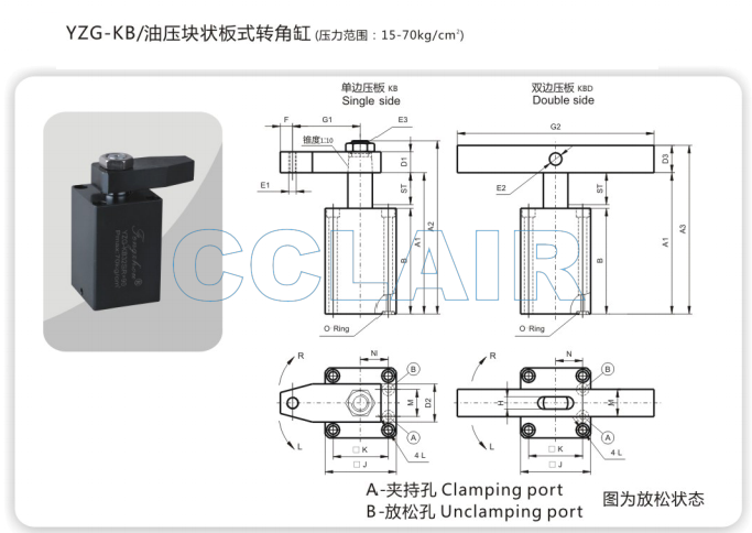 YZG-KB25,YZG-KB32,YZG-KB40,YZG-KB50,YZG-KB63,油壓塊狀板式轉(zhuǎn)角缸