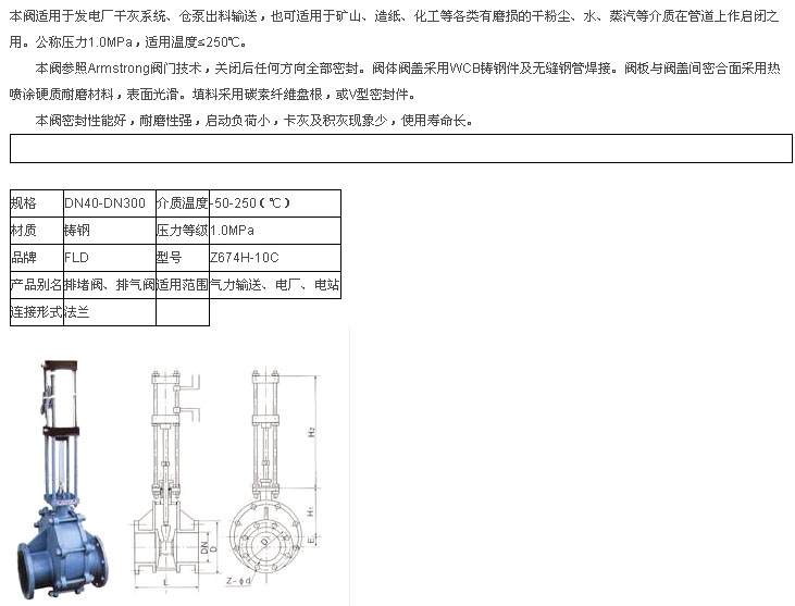 型號: Z674H-10C-DN40,Z674H-10C-DN50,Z674H-10C-DN65,Z674H-10C-DN80,Z674H-10C-DN100,Z674H-10C-DN125,雙閘板氣動出料閥