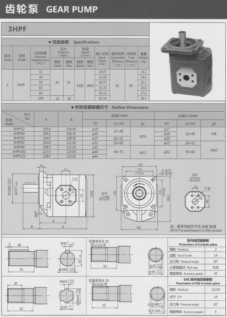 3HPF32,3HPF40,3HPF50,3HPF63,3HPF80,3HPF100,3HPF125,齒輪泵