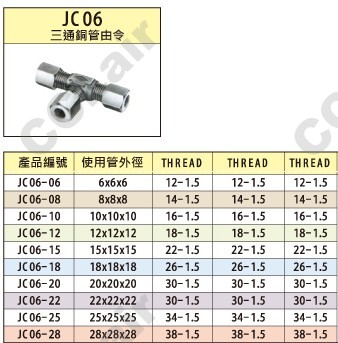 型號(hào): JC06-06,JC06-08,JC06-10,JC06-12,JC06-15,JC06-18,JC06-20,JC06-22,JC06-25,JC06-28,國(guó)鷹KUOIN鋼管接頭