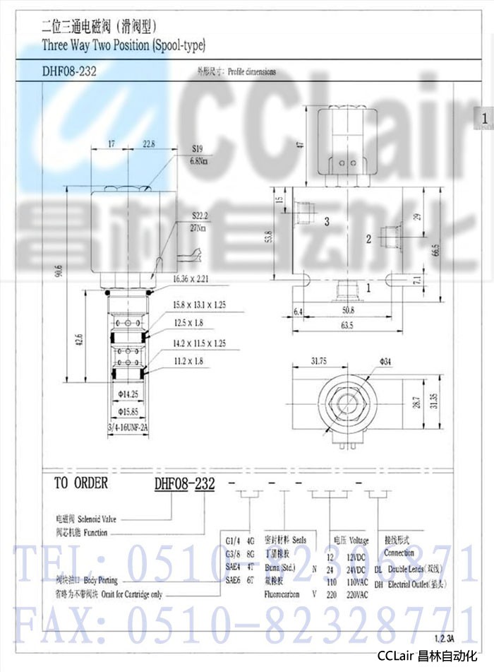 DHF08-232,二位三通電磁閥