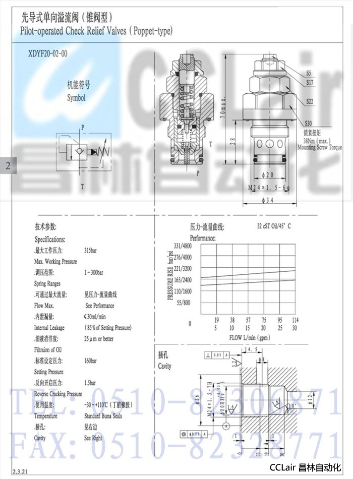 XDYF20-02,先導(dǎo)式單向溢流閥