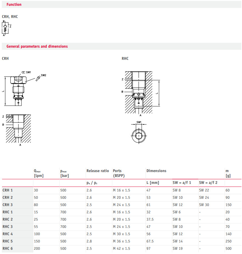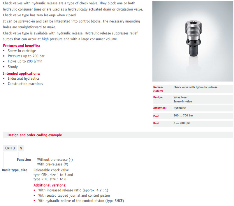 詳細信息 CRH1V,CRH2V,CRH3V,RHC1V,RHC2V,RHC3V,RHC4V,RHC5V,RHC6V,液控單向閥
