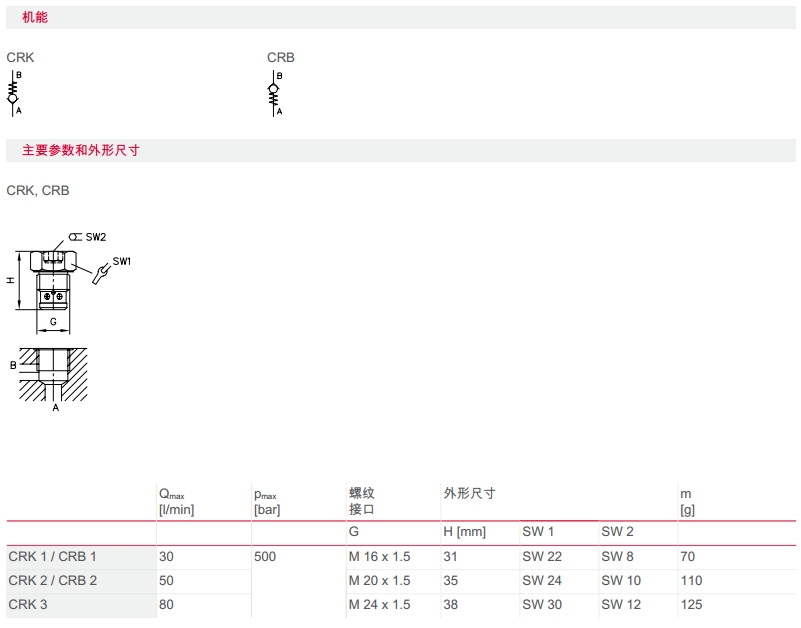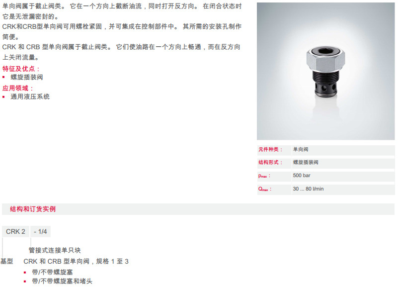 詳細信息 CRK1-1/4,CRB1-1/4,CRK2-1/4,CRB2-1/4,CRK3-1/4,單向閥
