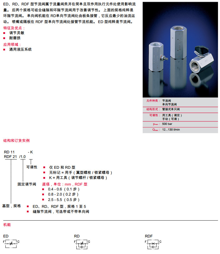 ED11-K,RD11-K,ED21-K,RDF31/1.0-K,RDF41/1.0-K,節(jié)流閥