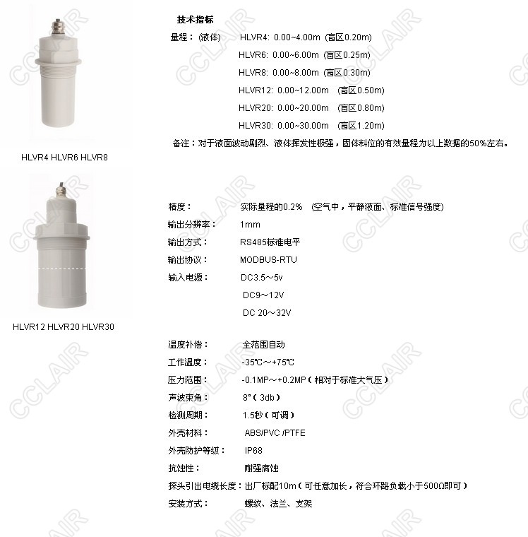 詳細(xì)信息 HLVR4,HLVR6,HLVR8,HLVR12,HLVR20,HLVR30,HLVR數(shù)字基本型超聲波液位變送器