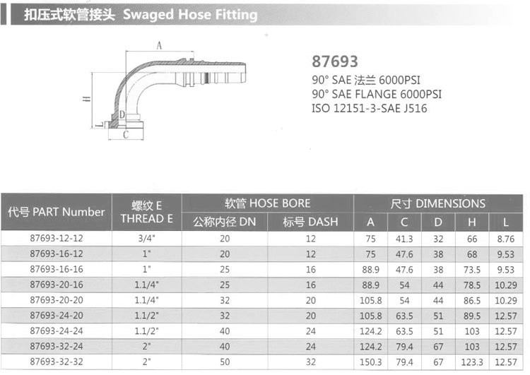87693-12-12,87693-16-16,87693-20-16,87693-20-20,87693-24-20,87693-32-24,扣壓式軟管接頭