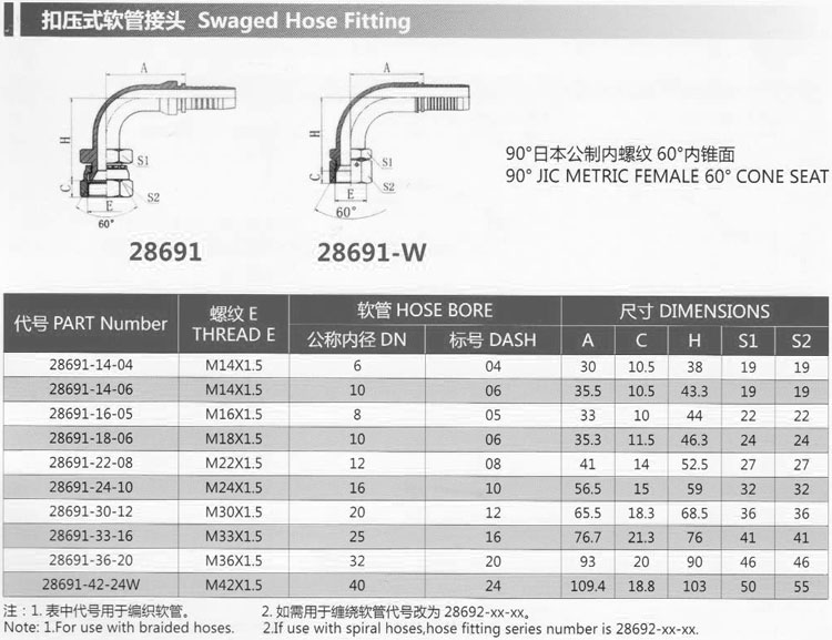 詳細信息 28691-14-04,28691-16-05,28691-18-06,28691-30-12,28691-42-24W,扣壓式軟管接頭