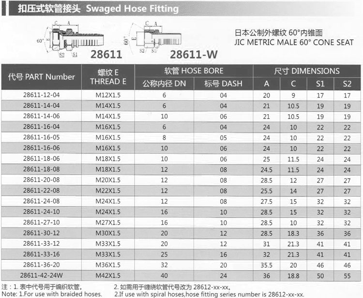 詳細(xì)信息 28611-12-04,28611-16-04,28611-20-08,28611-36-20,28611-42-24W,扣壓式軟管接頭