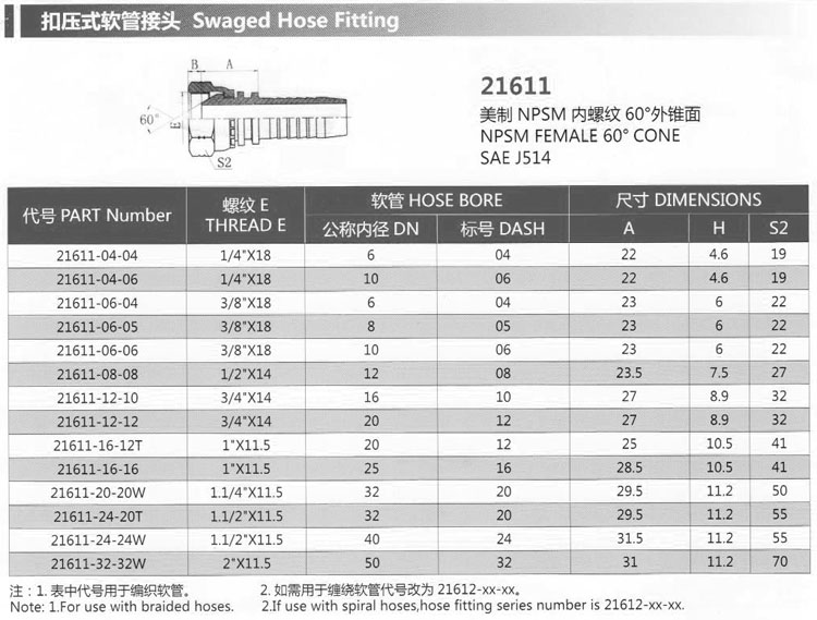 21611-04-04,21611-06-06,21611-08-08,21611-12-12,21611-20-20W,21611-32-32W,扣壓式軟管接頭