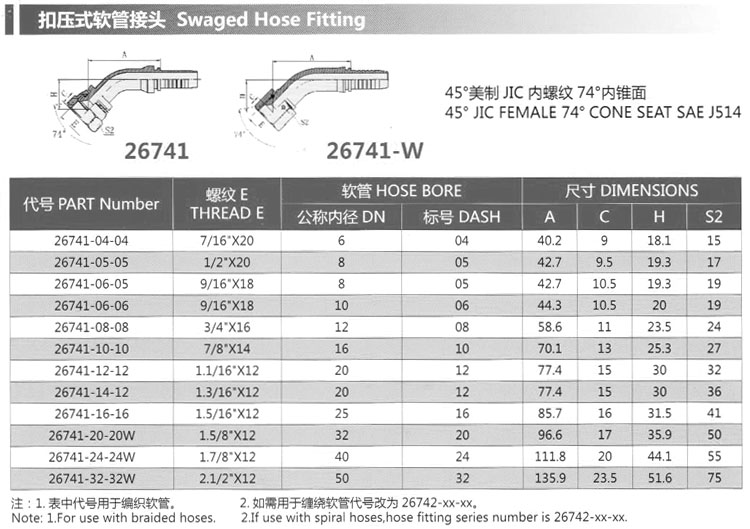 26741-04-04,26741-05-05,26741-06-06,26741-08-06,26741-10-10,26741-20-20W,26741-32-32W,扣壓式軟管接頭