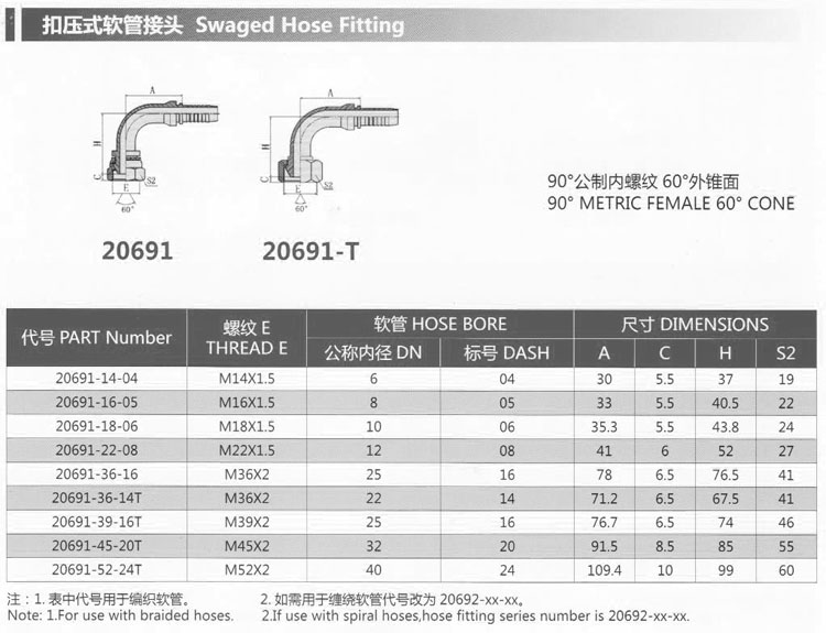 20691-14-04,20691-22-08,20691-36-16,20691-39-16T,20691-45-20T,20691-52-24T,扣壓式軟管接頭