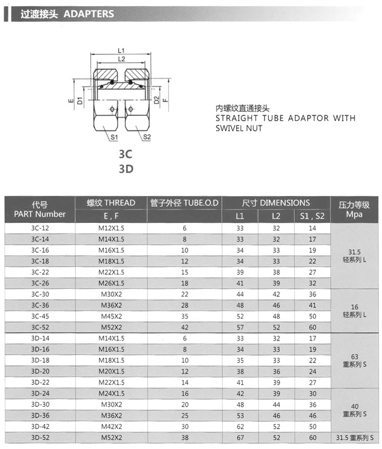 詳細(xì)信息 3D-14,3D-16,3D-18,3D-20,3D-22,3C-26,3C-30,3C-36,3C-45,3C-52,內(nèi)螺紋直通接頭 3D-24,3D-30,3D-36,3D-42,3D-52,3C-12,3C-14,3C-16,3C-18,3C-22,