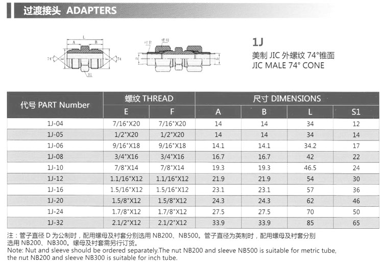 1J-04,1J-05,1J-06,1J-08,1J-10,1J-12,1J-16,1J-20,1J-24,1J-32,過渡接頭