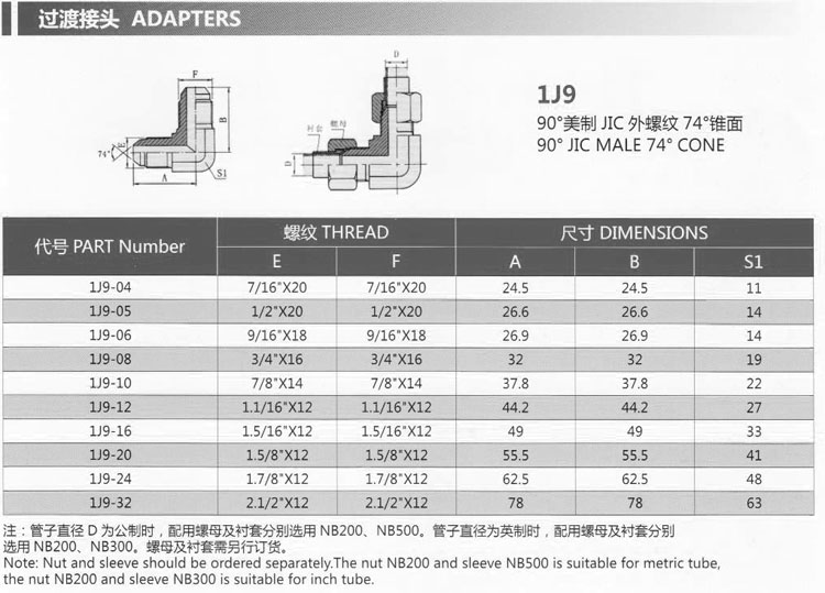 詳細信息 1J9-04,1J9-05,1J9-06,1J9-08,1J9-10,1J9-12,1J9-16,1J9-20,1J9-24,1J9-32,過渡接頭