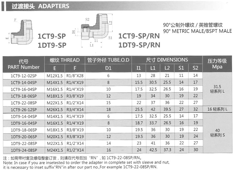 1CT9-12-02SP,1CT9-14-04SP,1CT9-16-04SP,1DT9-20-06SP,1DT9-22-08SP,1DT9-24-08SP,過(guò)渡接頭