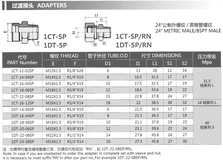 詳細(xì)信息 1CT-12-02SP,1CT-14-04SP,1CT-16-04SP,1DT-20-06SP,1DT-22-08SP,1DT-24-08SP,過渡接頭