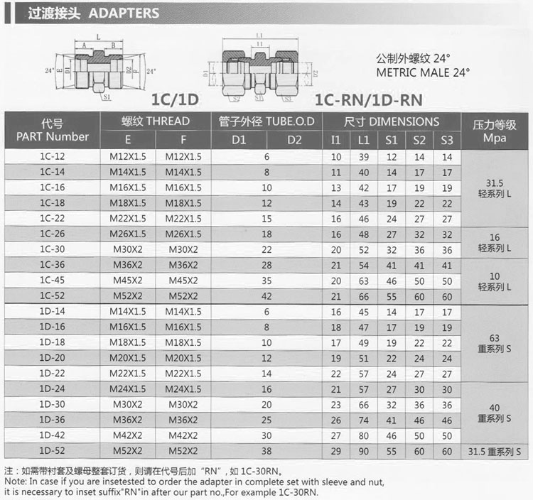 詳細信息 1C-12,1C-14,1C-16,1C-18,1C-22,1D-24,1D-30,1D-36,1D-42,1D-52,過渡接頭 1D-14,1D-16,1D-18,1D-20,1D-22,1C-26,1C-30,1C-36,1C-45,1C-52,